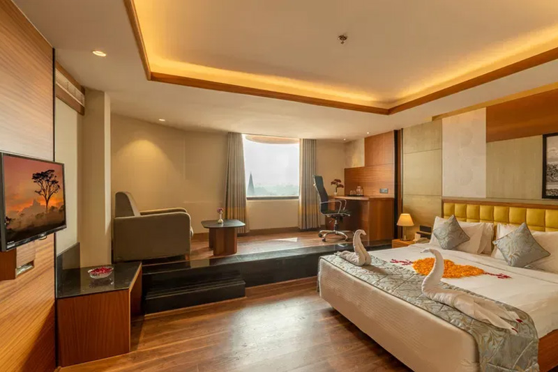 keyboard_arrow_left keyboard_arrow_rightEl hotel The Fern Residency Jaipur se encuentra en el centro de Jaipur, cerca del Pink Square Mall. Ofrece habitaciones modernas y elegantes, con Wi-Fi, TV y minibar. Dispone de piscina en la azotea, gimnasio y restaurante, ideal para viajeros que buscan confort y buena ubicación.