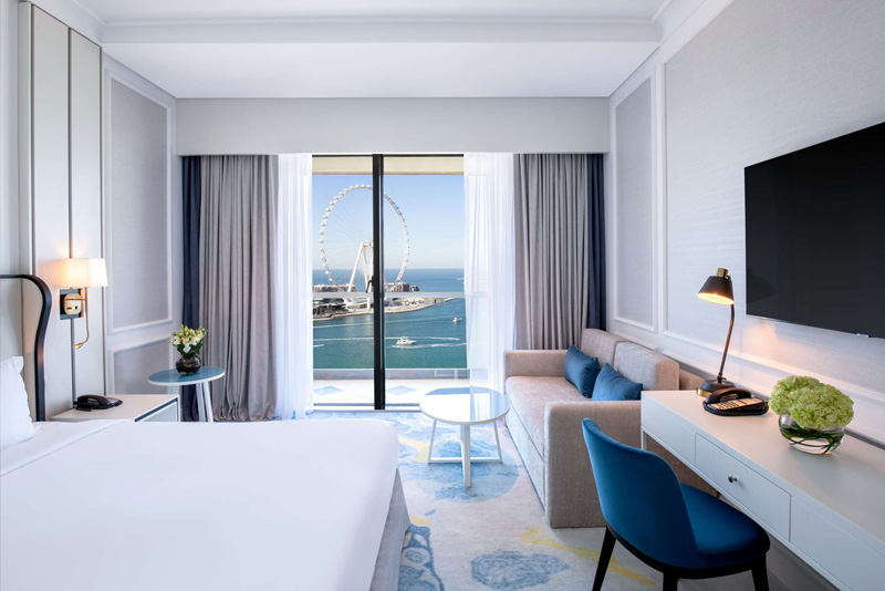 El hotel Sofitel Dubai Jumeirah Beach está situado en el animado paseo The Walk frente a la playa. Dispone de habitaciones y suites de inspiración francesa con vistas al mar, restaurantes de alta cocina, piscina infinita y spa, ideal para disfrutar de una experiencia elegante junto a la playa y la Marina.